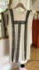 Gorgeous cream silk crepe with black lace, front and back. Delicate sewn pleats at the neck, front and back. Fully lined. Exposed back zipper. Excellent condition. Appears unworn.