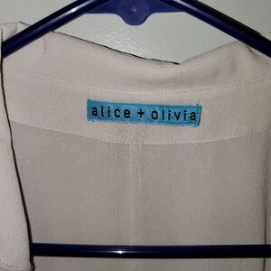 Alice + Olivia Cream V Neck Button Front Drape Cap Sleeve Blouse Top Medium