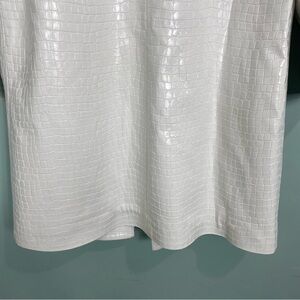 Alice & Olivia Croc Embossed Faux Leather Blazer White Sz L Oversized Open Front