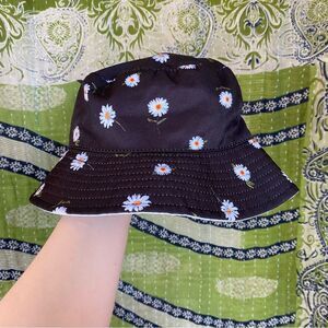 Alice + Olivia Daisy Print & Solid White Reversible Bucket Hat