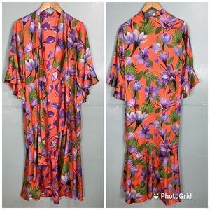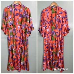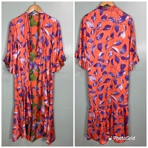 Alice & Olivia Dandi Reversible Leaf Print Floral Kimono Cardigan Sz M