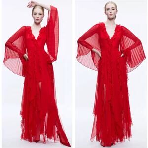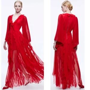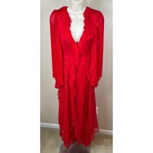 Alice+ Olivia Day Sunburst Red Pleated Sleeve Ruffle Tiered Maxi Dress Size 0