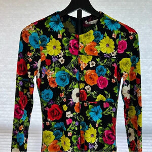 Alice + Olivia Delora Patchwork Floral Long Sleeve Mini Dress Flower Garden NWT