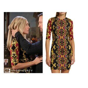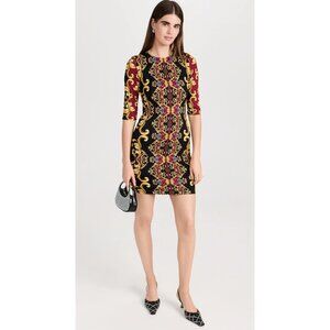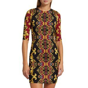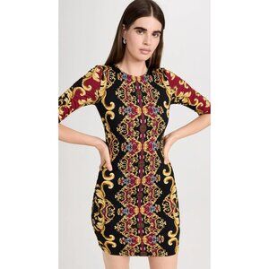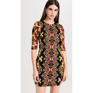 Alice + Olivia Delora Print Mini Dress Fitted Bodycon Damask Red Gold Black 8