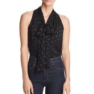 Alice + Olivia Delphine Black Star Burnout Print Silk Bow Tie Blouse Size Medium