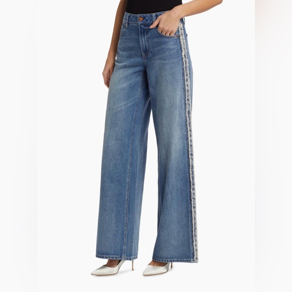 Alice + Olivia Denim Wide-Leg Jeans with Side Accent
