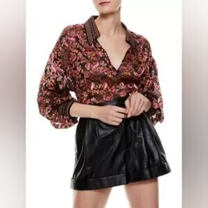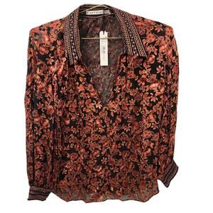 Alice + Olivia Desiree Orange Floral Print silk-blend Blouse size medium