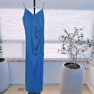 Alice + Olivia Diana V Neck High Slit Gown Cornflower Blue 6 Date Prom Formal
