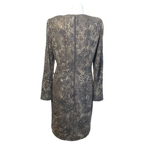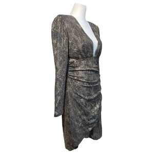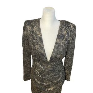 Alice + Olivia Diaz Plunging Long Sleeve Dress Black Gold Snakeskin Womens Sz 14