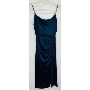 Alice + Olivia Dion Midi Satin Slip Dress – Navy Blue – Size 2