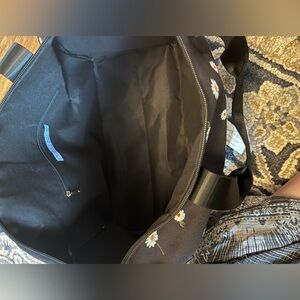 This Alice + Olivia daisy print duffel bag is NWT & features a structured design and medium size make it both stylish and practical for travel. The bag's ruched detailing adds a unique flair, ensuring you travel in style.