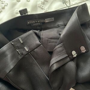 Alice + Olivia Dylan wide leg, high-waisted pants - these are the black pants with a shiny, satin material.