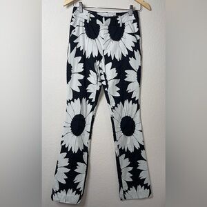Alice + Olivia Eddie Slim Bootcut Pant High Waist Sunflower White/ Black Size 0