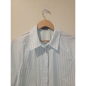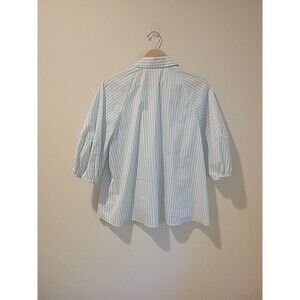 Alice + Olivia Edyth Striped Oversized Button-Front Shirt L Balloon Sleeve Blue