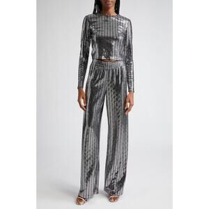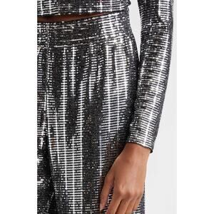 Alice + Olivia Elba Sequin Straight Leg Pants Silver/Black - M