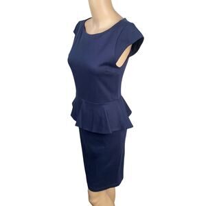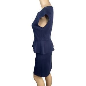 Alice + Olivia Employed Navy Blue Cap Sleeve Peplum Sheath Dress SZ 8