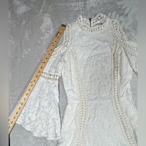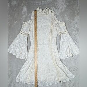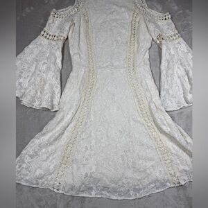Alice + Olivia Enya White Cream Boho Lace 100% Cotton Bell Sleeves Mini Dress
