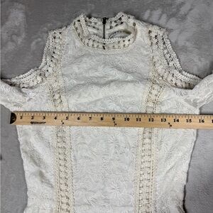 Alice + Olivia Enya White Cream Boho Lace 100% Cotton Bell Sleeves Mini Dress 0