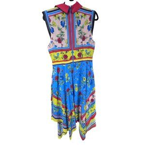 Alice + Olivia Farrah Mixed Floral Collared Handkerchief Hem Dress In Scarf Print Size 8