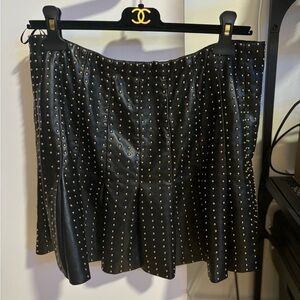 Alice + Olivia Faux Black Leather Studded Pleated Mini Skirt