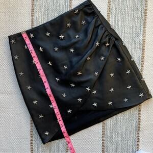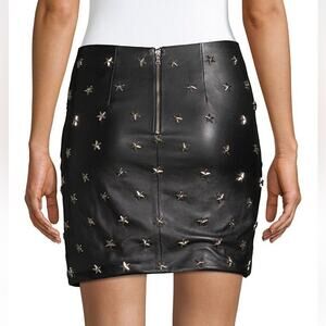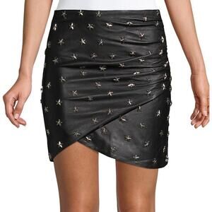 Alice + Olivia Fidela Black Silver Stars Stud Drape 100% Leather Mini Skirt