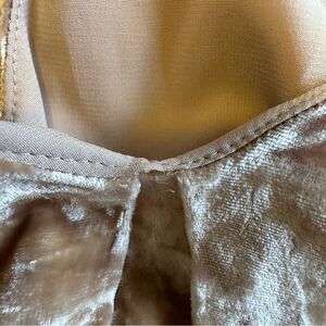 Made of a viscose/silk blend and the outer shell looks and feels like velvet