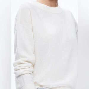 Alice + Olivia Fila Crewneck Wool Cashmere Pullover Sweater in Soft White