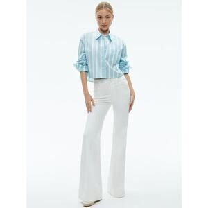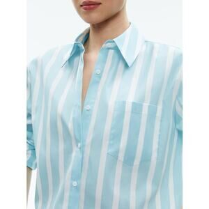 Alice + Olivia Finely Cropped Button Down Shirt – Dream Stripe Spring Sky – XS – Excellent Condition