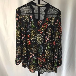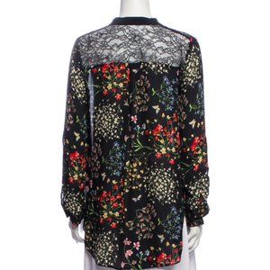 Alice + Olivia Floral Silk Blouse w/ Lace Details