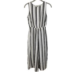 Alice + Olivia Franny Linen Gaucho Striped Jumpsuit 0 XS Belted European Summer