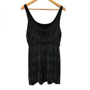 Alice + Olivia Gabby Beaded Silk Blouson Mini Tank Dress Black and Green Medium