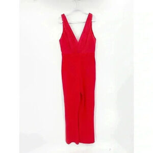 Alice + Olivia Gale Deep V-Neck Sleeveless Wide Leg Red Crepe Jumpsuit Size 2