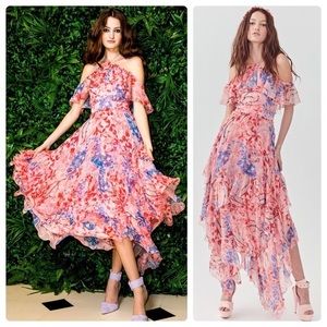 Women's Alice + Olivia Galina Handkerchief Maxi Dress in a size 2. All over floral print with a halter neckline and tiered, asymmetrical hem. Originally $695