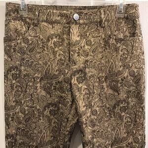 Alice + Olivia Gold Metallic Paisley Jacquard Pants Mid Rise Crop Pockets Size 6