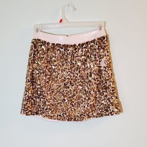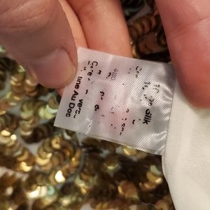 Alice + Olivia Gold Sequins Ivory Silk Mini Skirt.