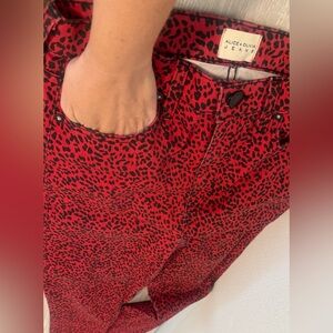 Alice + Olivia Good High Rise Ankle Skinny Jeans Red Leopard Funky Rock Size 28