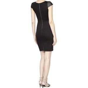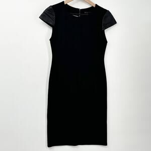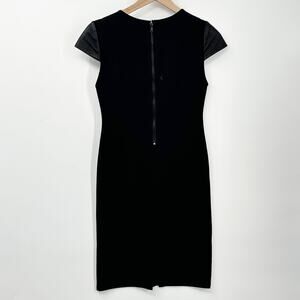 Alice + Olivia Gracie Black Sheath Dress Leather Cap Sleeves in Black Size 2