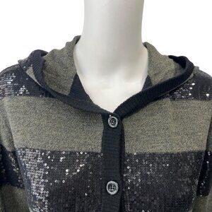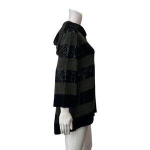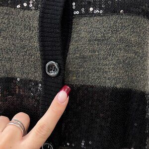 Alice + Olivia Green Black Sequin Button Cardigan Wool Sweater size Medium