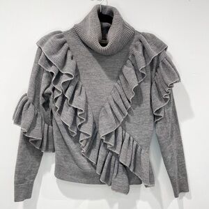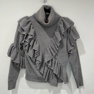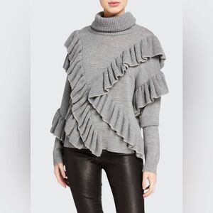 Alice + Olivia Grey Libbie Ruffled Pullover Sweater