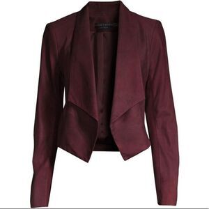 Alice & Olivia HARVEY Limited-Edition Lamb Leather Blazer Jacket Wine NWT $898 S