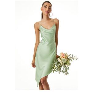 Alice + Olivia Harmony Assymetric Satin Slip Dress in Light Sage NWT $395