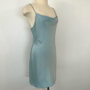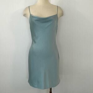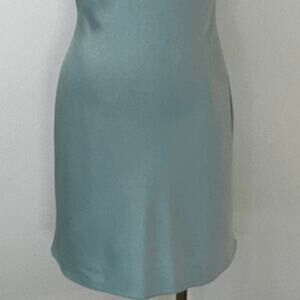 Alice + Olivia Harmony Mini Slip Dress in Waterfall Light Blue Satin 8