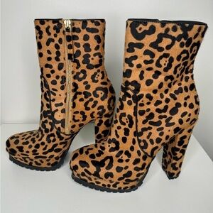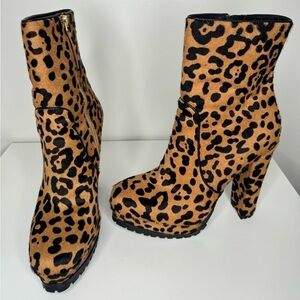 Alice + Olivia Harper Cheetah Print Calf Hair Mid-Calf Platform Boots Size 38.5