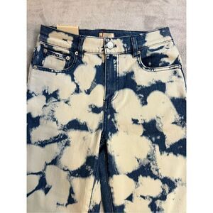Alice & Olivia High Rise Straight Leg Jeans. Bleached/blotted by design. See pics for measurements.