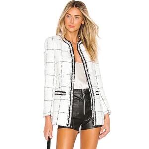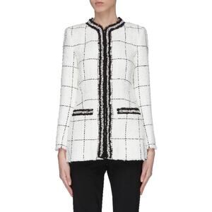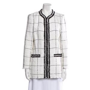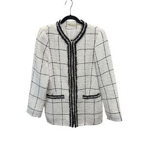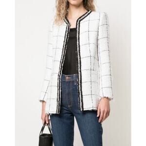 Alice + Olivia Indira Tweed Jacket Black White Cotton Blend Classic Office sz 6
