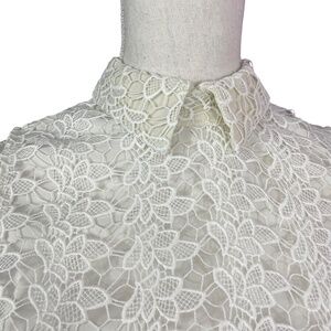 Alice + Olivia Irene Lace Dress XS Silk White Floral Guipure Collared Sleeveless