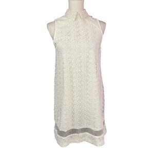 Alice + Olivia Irene Lace Dress XS White Floral Guipure Collared Sleeveless Mini