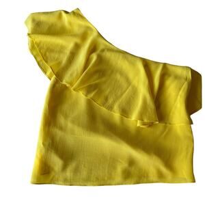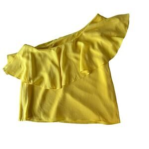 Alice + Olivia Izidora Top One Shoulder Silk Ruffled Size XS in Lemon Yellow