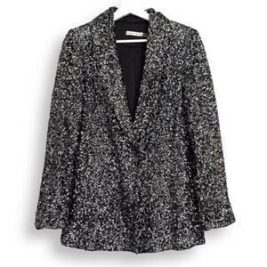 Alice + Olivia Jace Sequin Oversized Blazer GunMetal Black, Small, NWT
