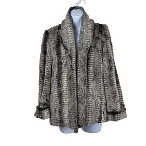 Alice & Olivia Jacket Womens Small Leana Faux Fur Gray Black Print Coat Luxury
